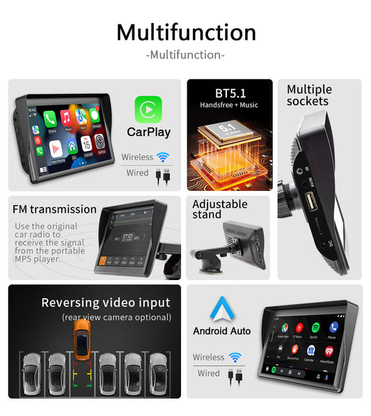 Universal 7-Inch Car Radio Video Player Wireless For Apple CarPlay Android Car Touch Screen